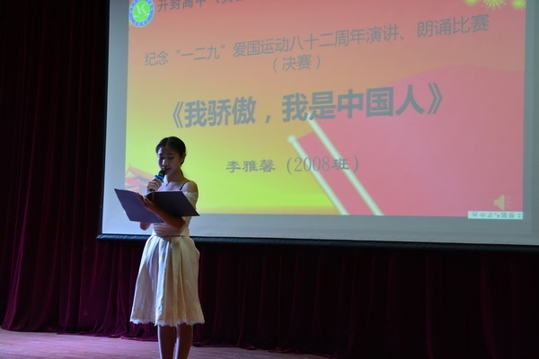 为了纪念“一二·九”爱国运动八十二周年,弘扬爱国主义、集体主义精神,传承民族文化,在校园内掀起爱国主义教育和传统文化传承教育的高潮,校团委、西校区综合办联合举办了主题为“弘扬民族精神、继承传统文化”的演讲、朗诵比赛。